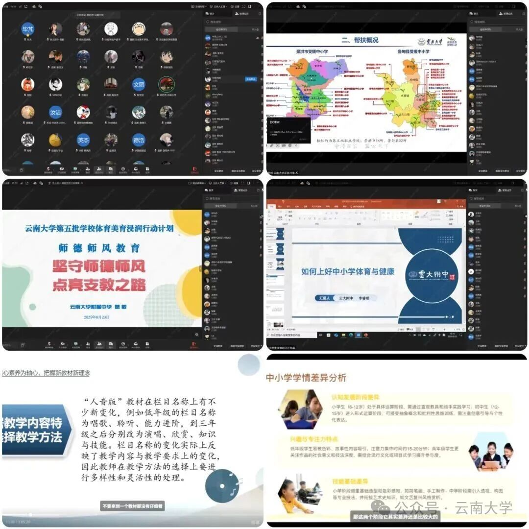 为确保支教学生顺利适应教学环境,快速完成从学生到教师的身份转变,本科生院及三个学院组织开展了多轮岗前培训。期间,邀请多位具有深厚教育情怀和丰富教学经验的云大附中、附小的一线教师,结合《义务教育课程标准(2022年版)》,对支教学生进行全面系统地培训指导。同时,邀请多次参加浸润行动的带队教师以及前四批的优秀支教学生代表,与第五批支教师生开展经验交流分享;邀请校医院综合门诊部主任陈云洁为支教师生作疾病预防及安全教育培训。
