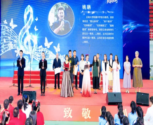 图为9月19日教工党支部教师参与云南大学附属中学纪念中国人民抗日战争暨世界反法西斯战争胜利80周年“薪火相传、致敬胜利”合唱比赛工作。