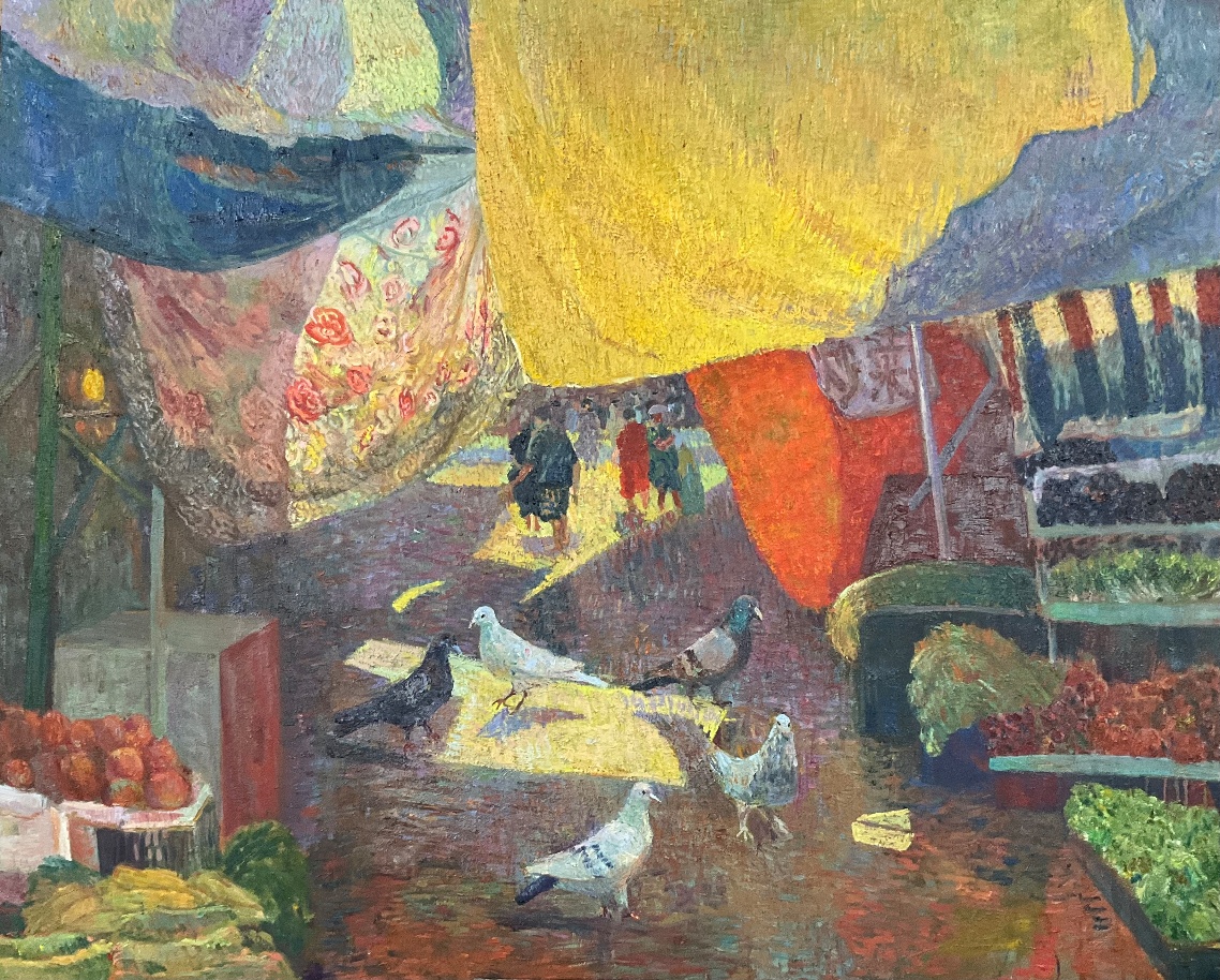刘砚书《暖阳下的集市》布面油画 120x150cm 2025年
