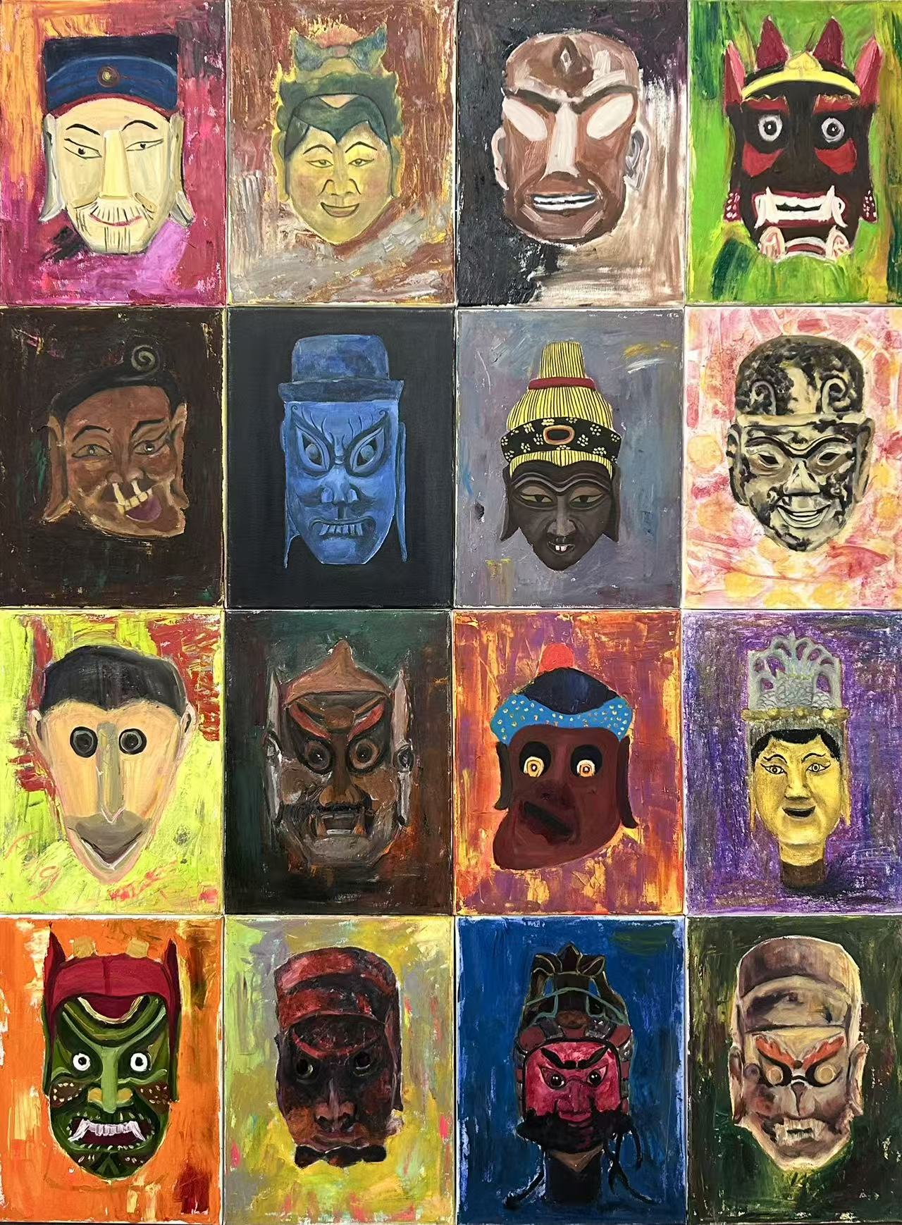 冯魏《贵州德江土家族傩戏角色面具》布面油画40×30cm×16 2025年