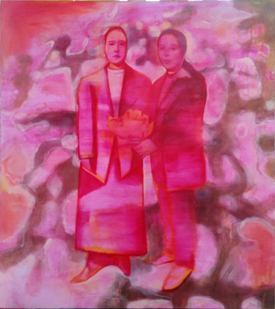 吴恒志《海市蜃楼·对话母亲》布面油画、丙烯 100×90cm 2025年